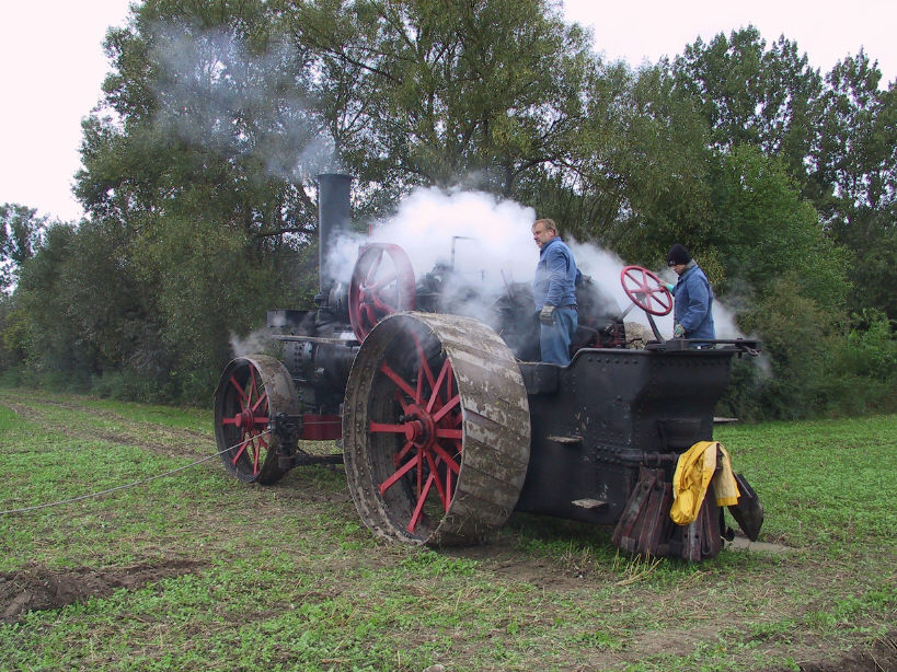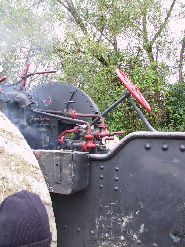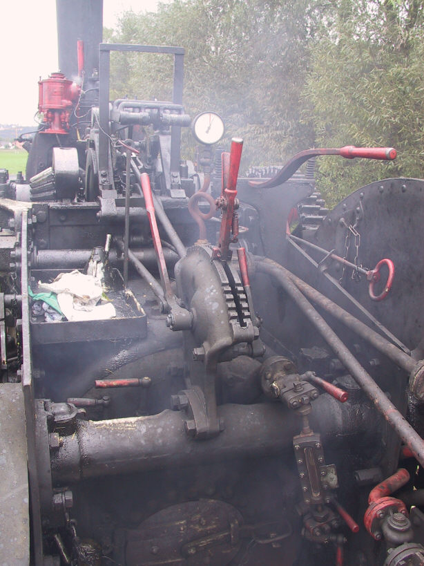 Oben auf dem Kessel liegt die Zweizylinder-Verbund-Dampfmaschine. Rechts