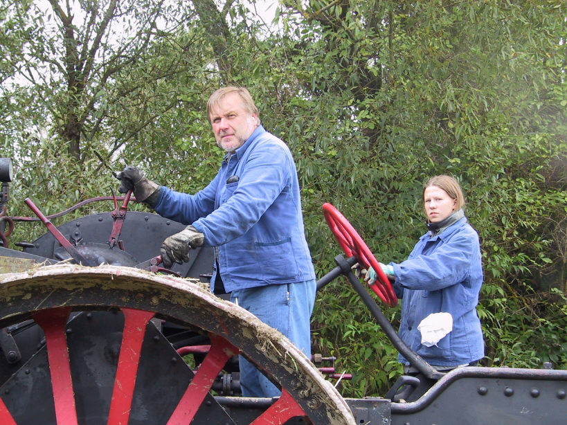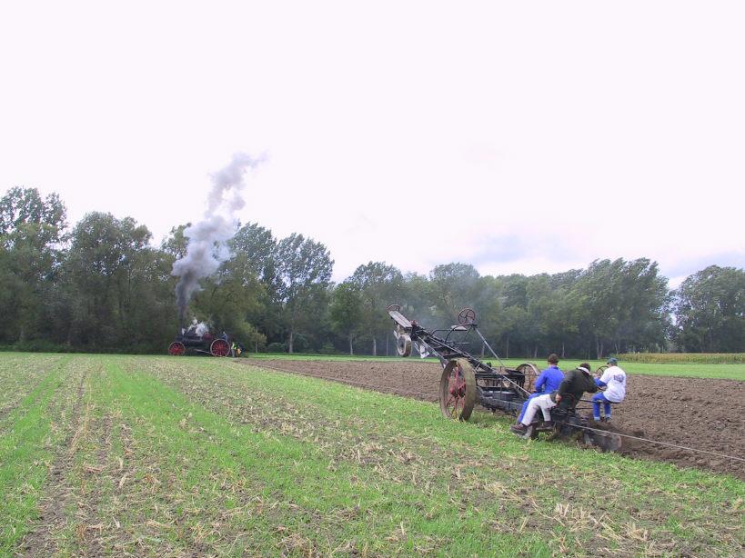 dem Dampfkessel liegenden Seilwinden am Feldrand gegenüber. Der
