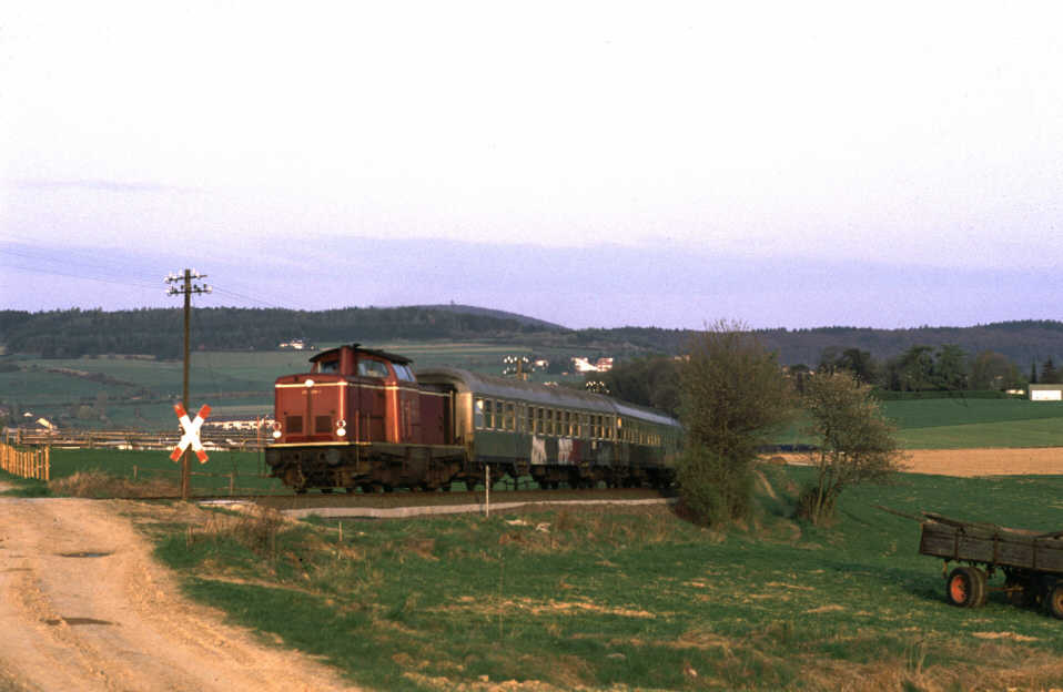 212 371-9 am 19.04.1988 vor N 8784 in Usingen. Der zweite Wagen ist der Expressgutwagen! © Markus Göttert, |