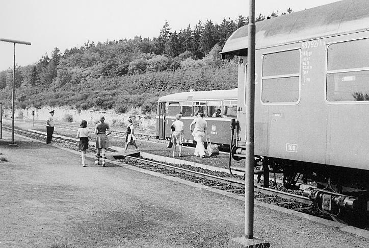 Ab 03.10.1993 fuhren nur noch die Triebwagen VT/VS 2E, die später durch solche der DB-Bauarten 628.4 und 629 ergänzt wurden. Doch dazu möge eine anderer etwas schreiben. Frédéric Dildei, 25. Juni 2002 |