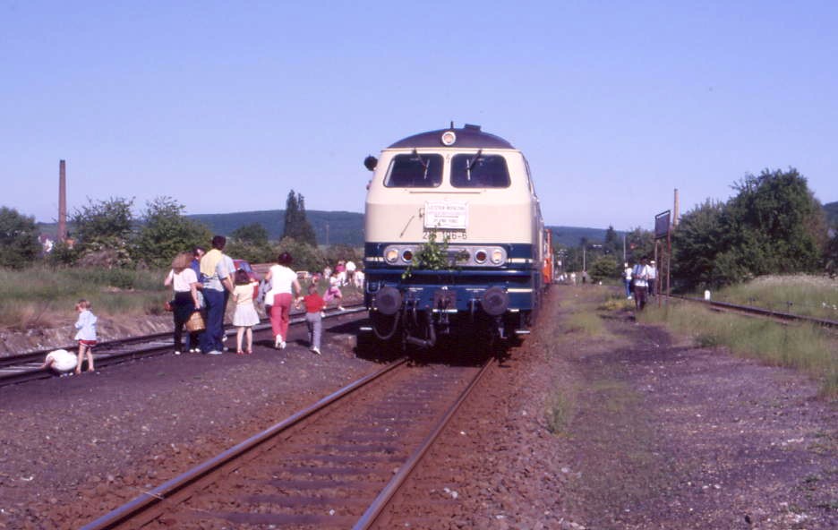 Vor Brandoberndorfs Bahnhofsgebäude, dort wo einst die drei Gleise des Bahnhofs lagen, ist heute ein Umsetzgleis der Taunusbahn. Hier warten die Züge auf ihren neuen Einsatz nach Bad Homburg. Überraschend für den Käufer des Bahnhofsgebäudes, der wie manch anderer Anlieger zwischen Friedrichsdorf und Brandoberndorf nicht mehr an die Wiedergeburt der Eisenbahn geglaubt hatte. |
