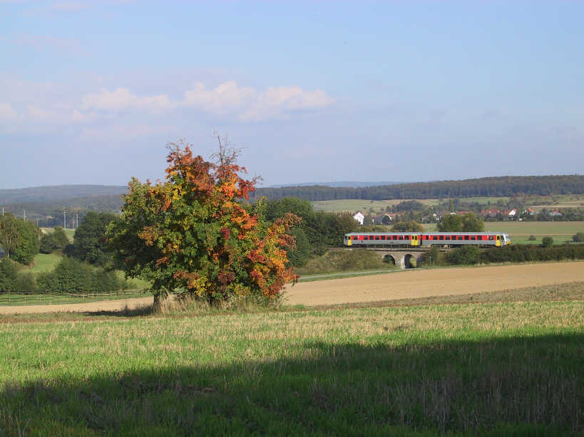 Hintergrund, ein VT 51 nach Usingen auf dem Viadukt über