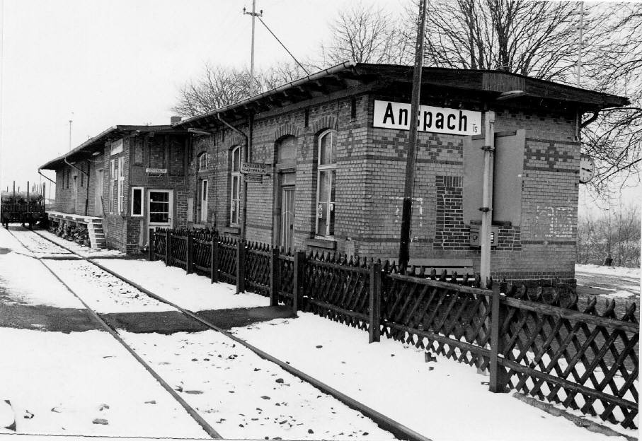 Die beiden linken Bilder zeigen Anspach noch mit dem alten Namen Anspach/Ts. Bei der Gebietsreform 1977 wurde Anspach zu Neu-Anspach umbenannt. Bemerkenswert ist die Ähnlichkeit des inzwischen abgerissenen Bahnhofsgebäudes mit dem von Köppern. Der vordere Anbau ist bloß um zwei Fenster verlängert! |