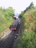 In Fahrtrichtung Grävenwiesbach links neben der Abstellanlage der Triebwagen befand sich der Lokschuppen des Bahnhofs Usingen, der leider aber bereits vor der Taunusbahn-Ära verkauft war und nicht mehr für Bahnnutzungen zur Verfügung stand. Auf der gleichen Seite - auf einer kleinen Anhöhe gelegen - gibt es noch den Wasserturm, der die Bahnanlagen in Usingen versorgt hat. |