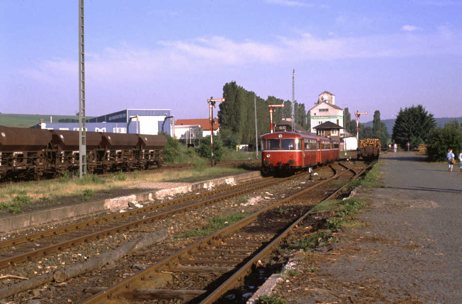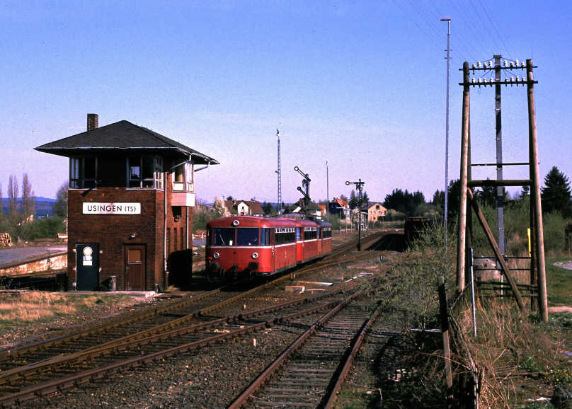 Betrieblicher Mittelpunkt der Taunusbahn ist der Bahnhof der früheren Kreisstadt Usingen. Hier befinden sich umfangreiche Abstellanlagen und das Zentralstellwerk der Taunusbahn, von dem aus die gesamte Strecke gesteuert wird. Der Bahnhof besitzt einen Mittelbahnsteig und das ehemalige Bahnhofsgebäude aus dem Jahr 1895 ist noch vorhanden, wenngleich leider heruntergekommen. |
