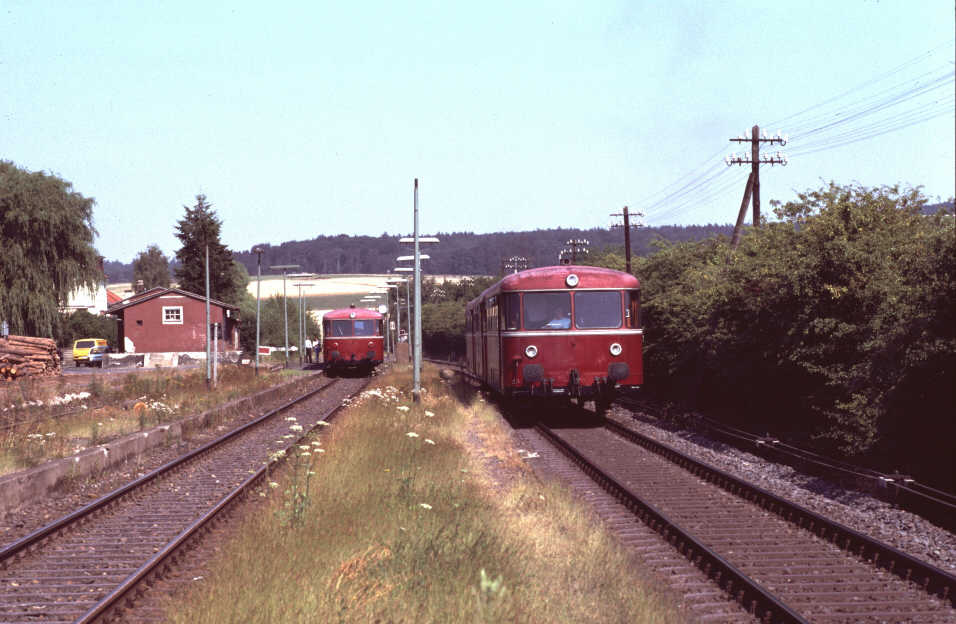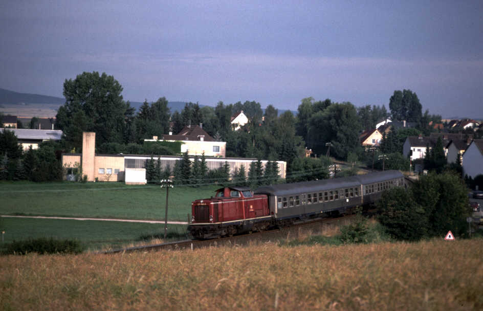 Hinter dem Bahnhof Saalburg führt die Strecke in mehreren weit ausholenden Bogen durch das waldlose Usinger Becken. Der Bahnhof Wehrheim liegt unmittelbar hinter einem Bahnübergang über die alte B 456 Bad Homburg - Weilburg, die die Bahn in mehr oder minder großer Entfernung nunmehr begleitet. Wehrheim und Neu Anspach mit seinen Ortsteilen Hausen und Arnsbach haben sich in den letzten Jahrzehnten zu wichtigen Siedlungspunkten entwickelt. Seit den siebziger Jahren ist Neu-Anspach von der Regionalen Planungsgemeinschaft Untermain zum „Siedlungsschwerpunkt“ erkoren worden. |