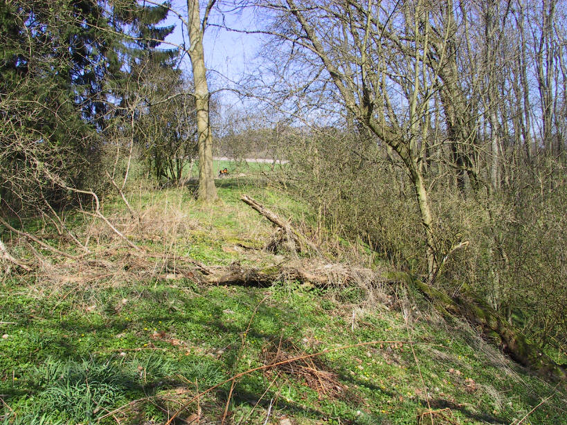 Einsatzhäfen erster Klasse sollten einen Bahnanschluß haben. Geplant war ein Gleis vom Bahnhof Wilhelmsdorf. Die Trasse ist heute noch zu erkennen und führte genau unter der Kreuzung der beiden Landstrassen bei Wilhelmsdorf durch. Sie führte weiter auf das Gelände der heutigen Erdfunkstelle. Die Brücke ist heute verfüllt und die weitere Trasse nicht mehr sichtbar. Es gibt fast keine Relikte mehr und außerdem ist das Gelände der Erdfunkstelle nicht öffentlich begehbar. |